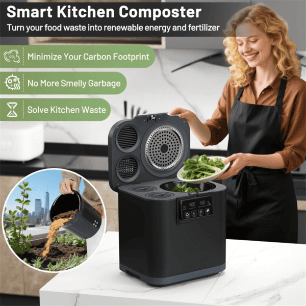 ● High Capacity Composting: Capable of handling up to 1 Gallon of daily kitchen waste, the compost bin impressively reduced food waste by 90% in 4-6 hours, turning your food waste into renewable energy and fertilizer.