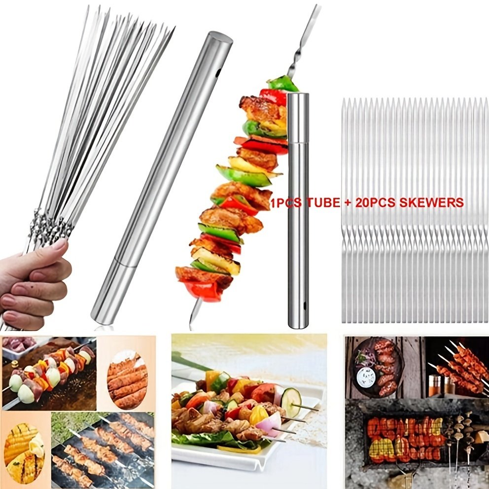 Home > 20pcs Grilling Flat Metal BBQ Skewers Stainless Steel Kabob BBQ Skewer 35CM/13.77inch