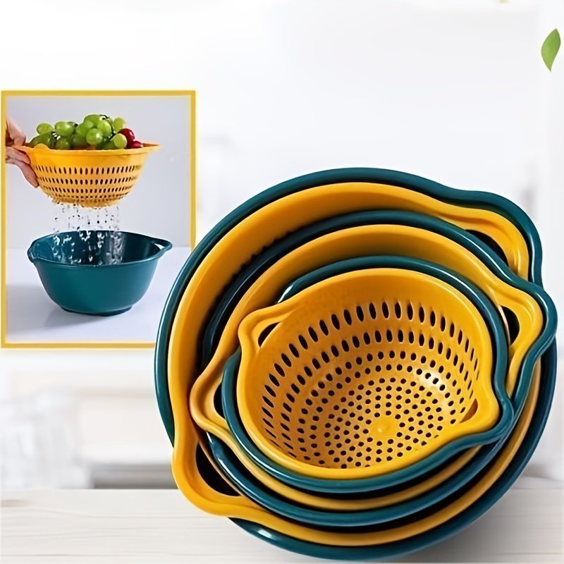 Home > 6pcs Household Drain Basket Set; Plastic Double Layered Kitchen Food Strainer Fruits Vegetable Washing Basket; Stackable Drain Bowls For Cleaning Wash